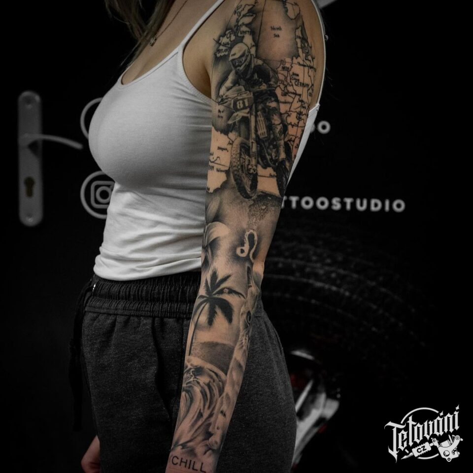 Tetování n ruku, motorka, cestování