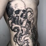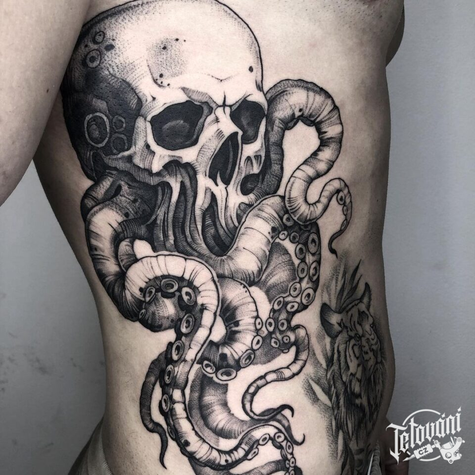 Tetování na bok, lebka, zvířata, chobotnice