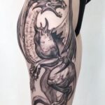 Tetování na bok stehna, mýtické bytosti, Drak