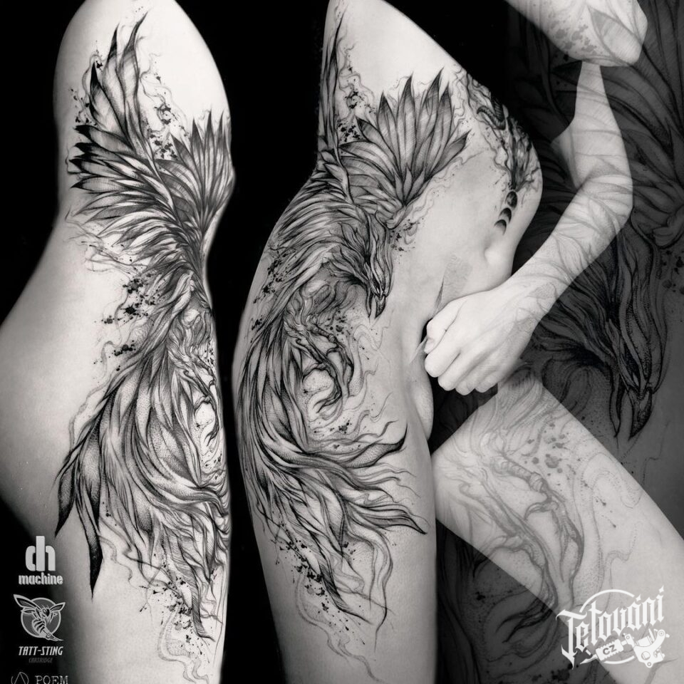 Tetování na bok stehna, Mýtické bytosti, Fénix