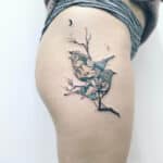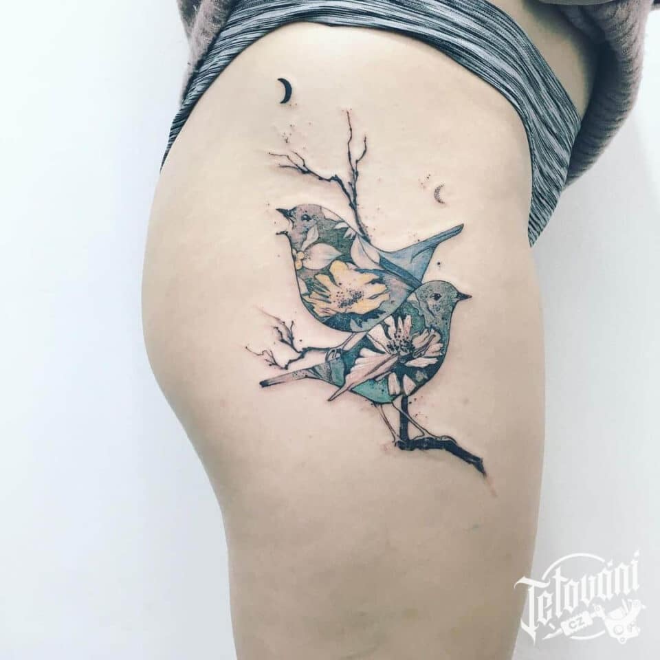 Tetování na bok stehna, zvířata, ptáci