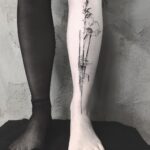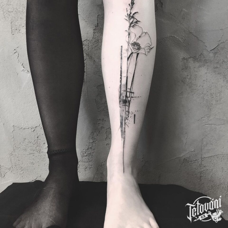 Tetování na nohu, květiny, čáry, pruhy