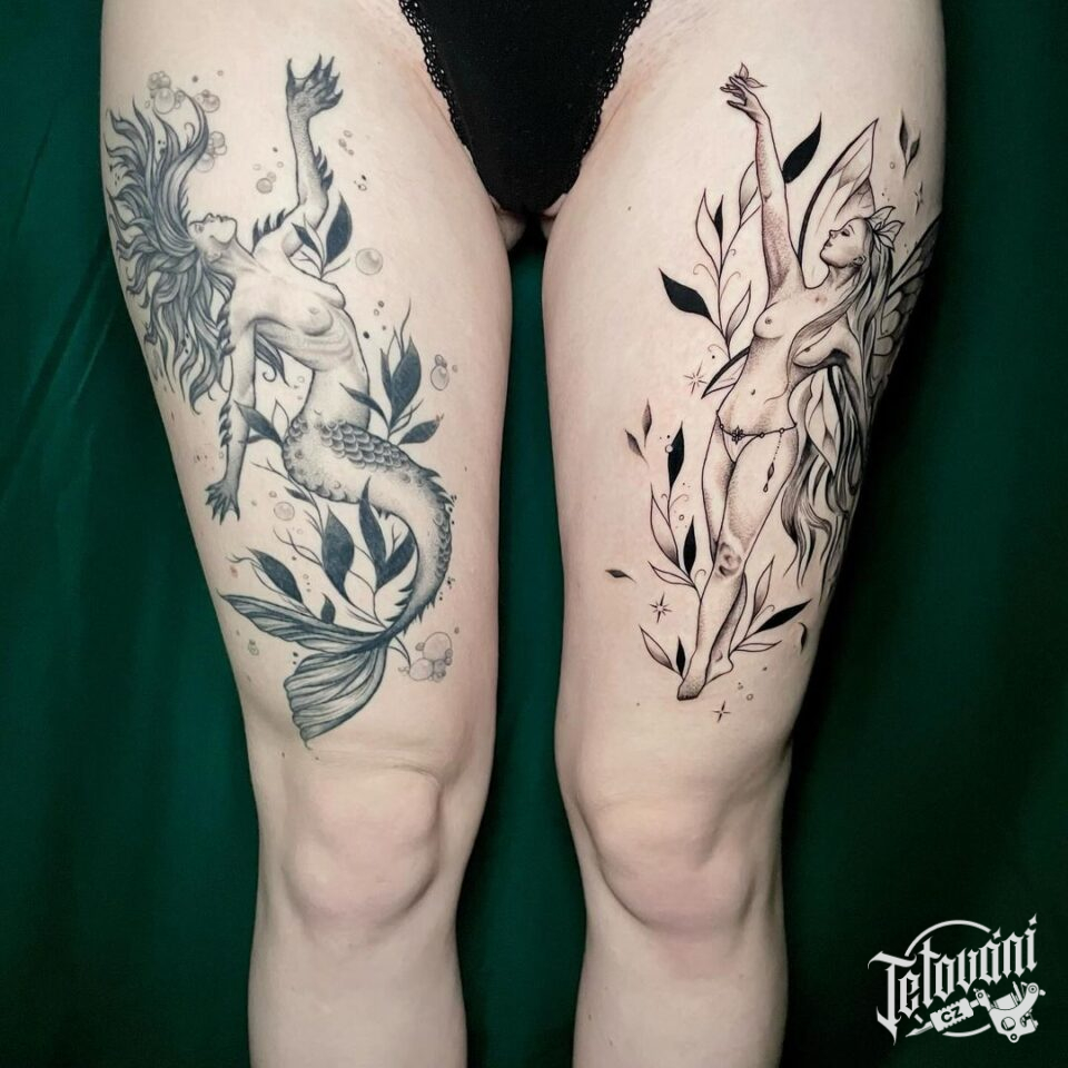 Tetování na nohu, portrét, žena