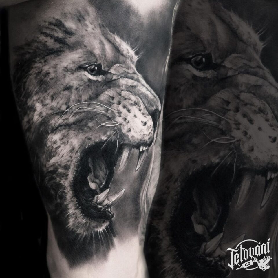 Tetování na nohu, zvířata, lev