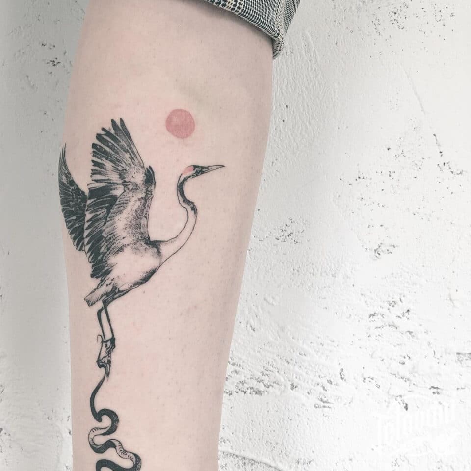Tetování na nohu, zvířata, plamenak