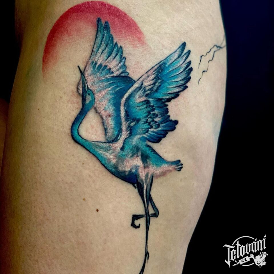 Tetování na nohu, zvíře, plamenák