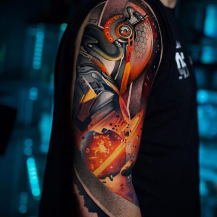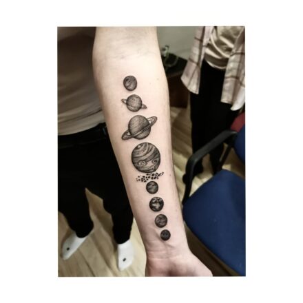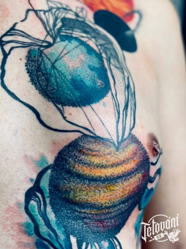 Tetování na prsa, vesmír, planety