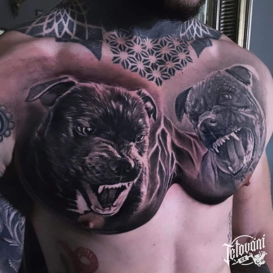 Tetování na prsa, zvíře, pes