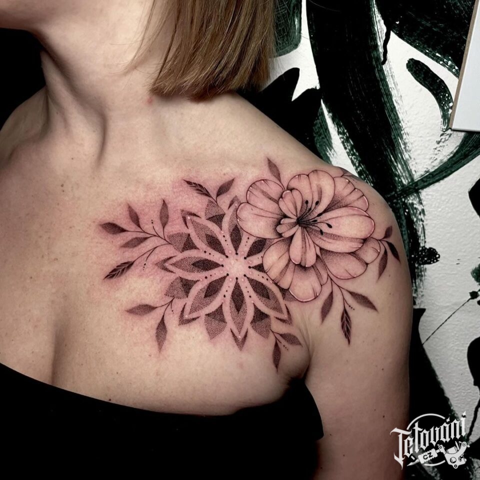 Tetování na rameno, květiny