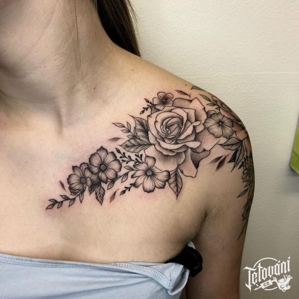 Tetování na rameno, květiny