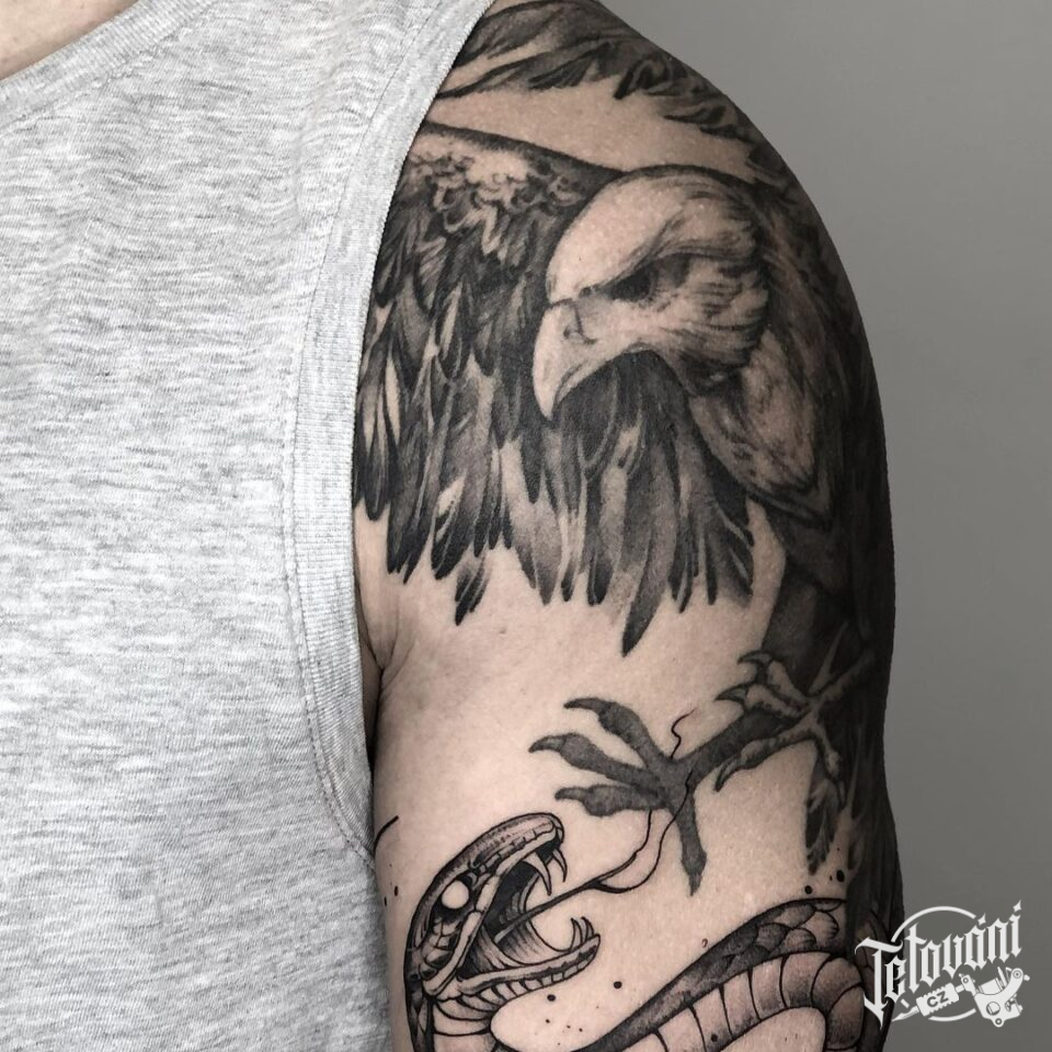 Tetování na rameno, zvířata, orel, had