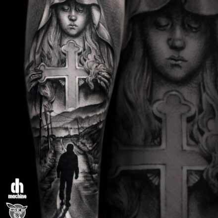 Tetování na ruku, hodiny, cesta, náboženství, Panna Marie