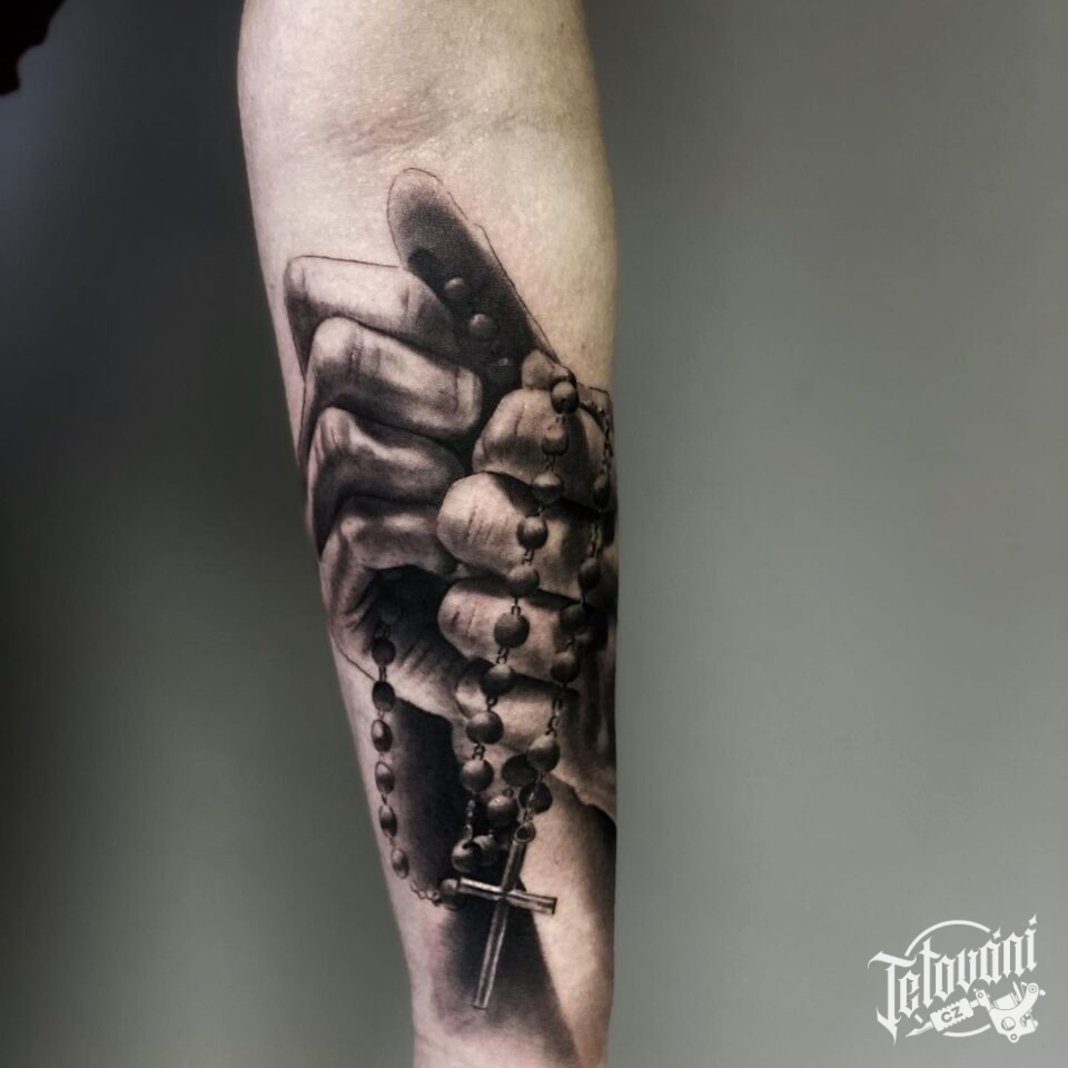 Tetování na ruku, kříž...