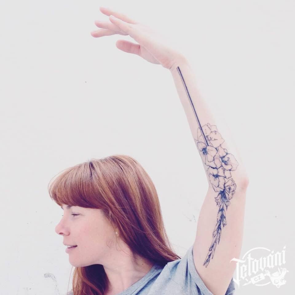 Tetování na ruku, květiny, čáry, pruhy