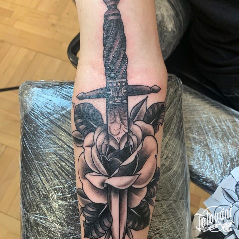 Tetování na ruku, meč, k...