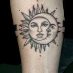 Tetování na ruku, vesmír, slunce, měsíc, nápisy