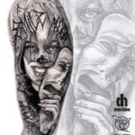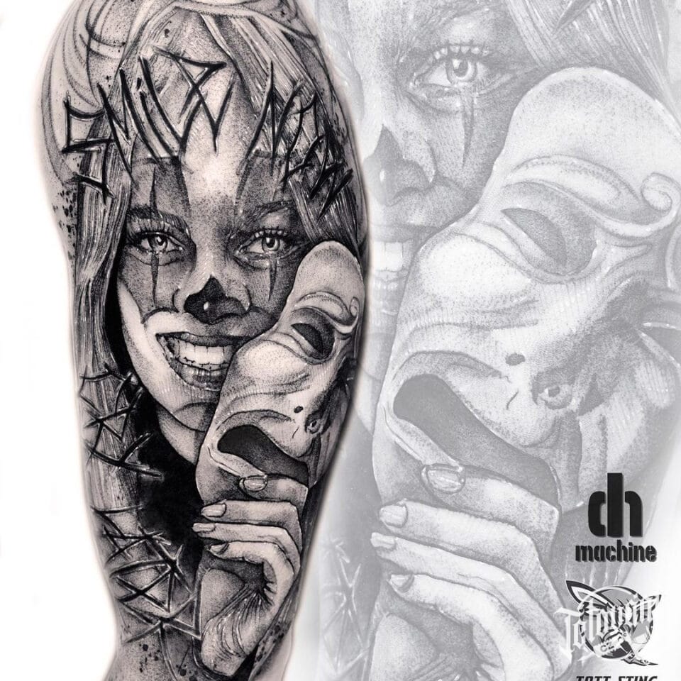 Tetování na ruku, žena, masky