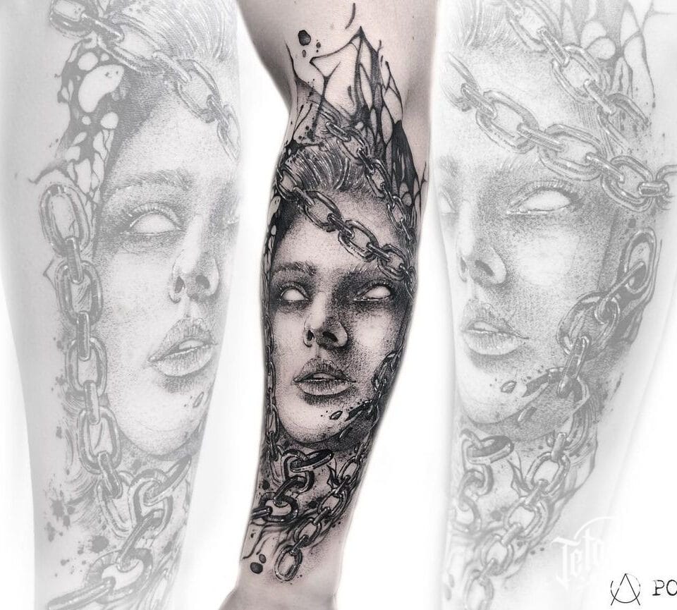Tetování na ruku, žena, řetěz