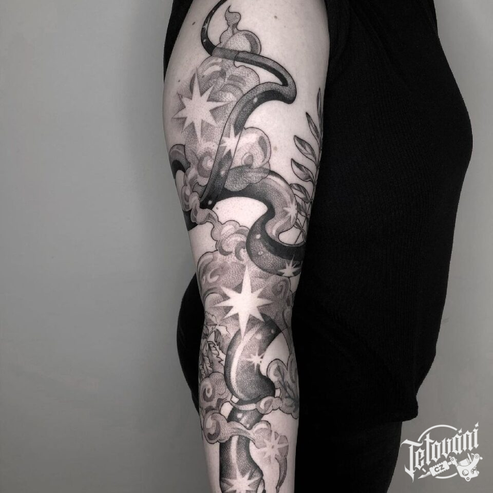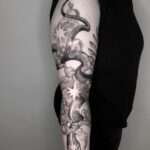 Tetování na ruku, zvířata, had, vesmír