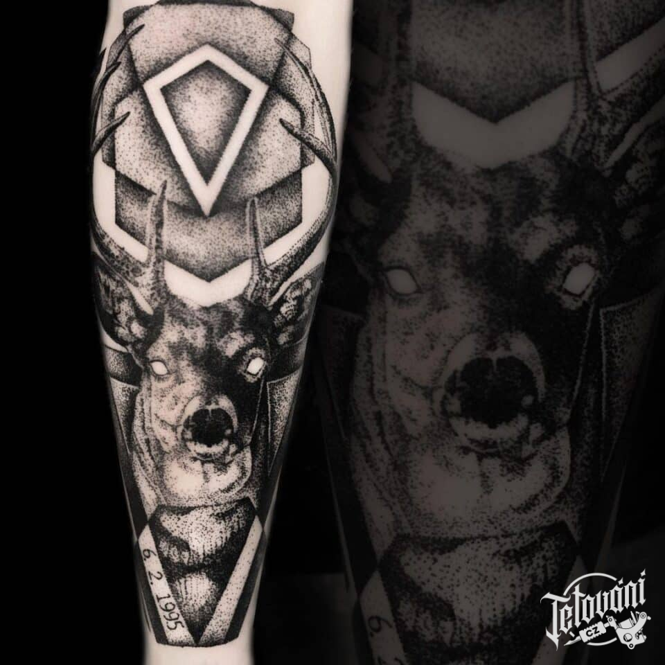 Tetování na ruku, zvířata, jelen, znaky a symboly