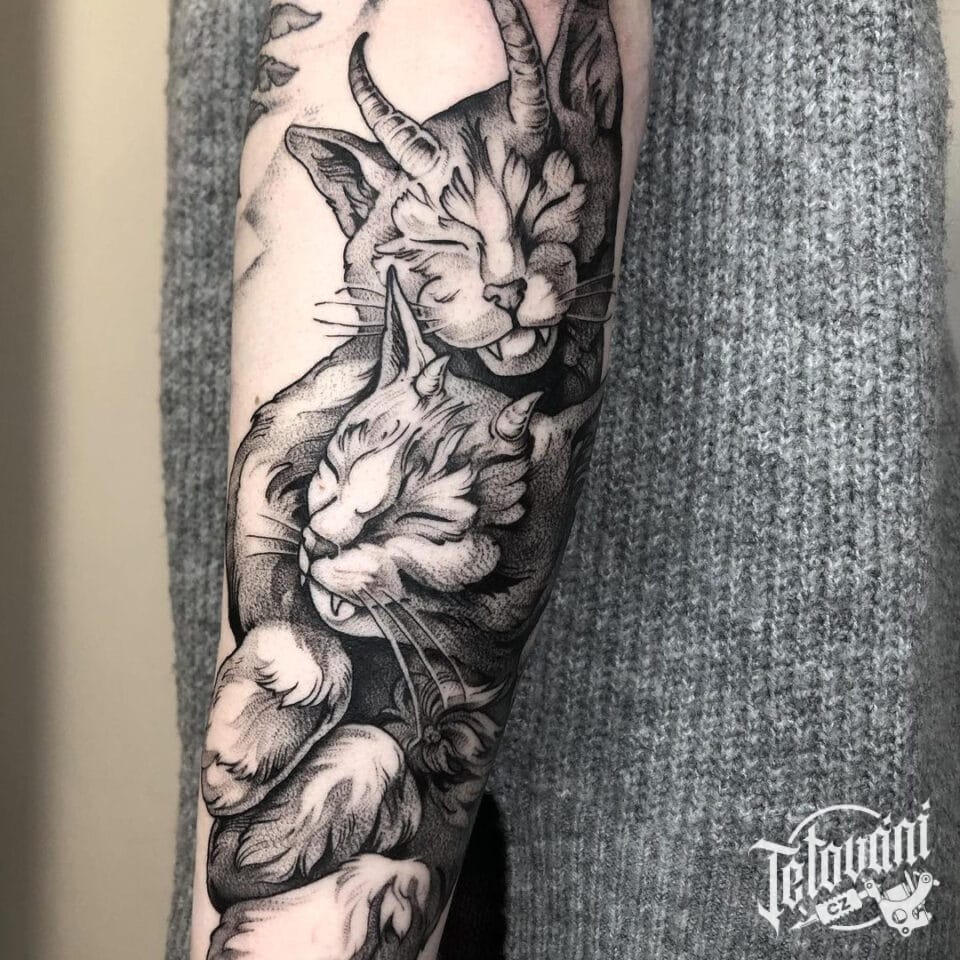 Tetování na ruku, zvířata, kočka
