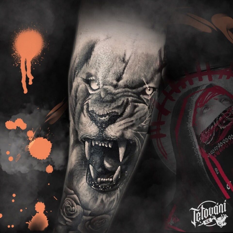 Tetování na ruku, zvířata, lev