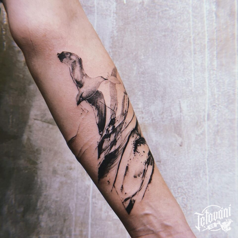 Tetování na ruku, zvířata, ptáci, příroda, moře