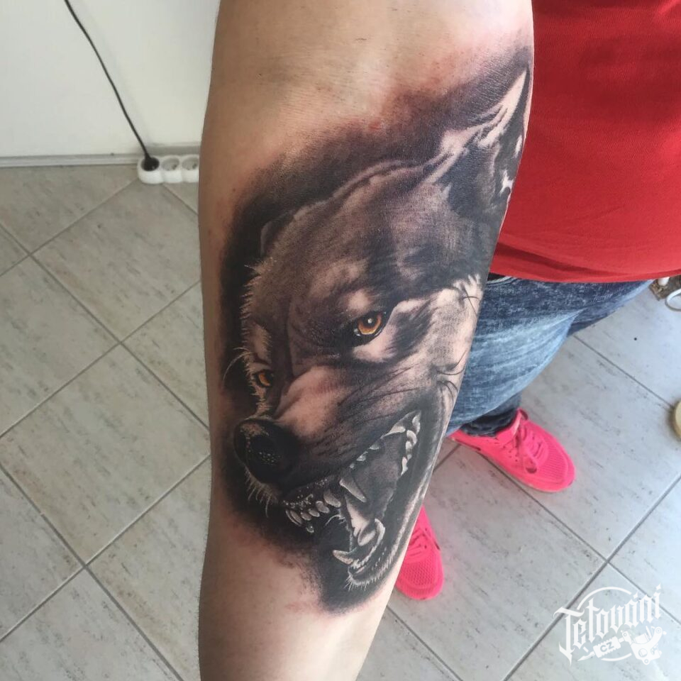 Tetování zvíře, vlk na předloktí