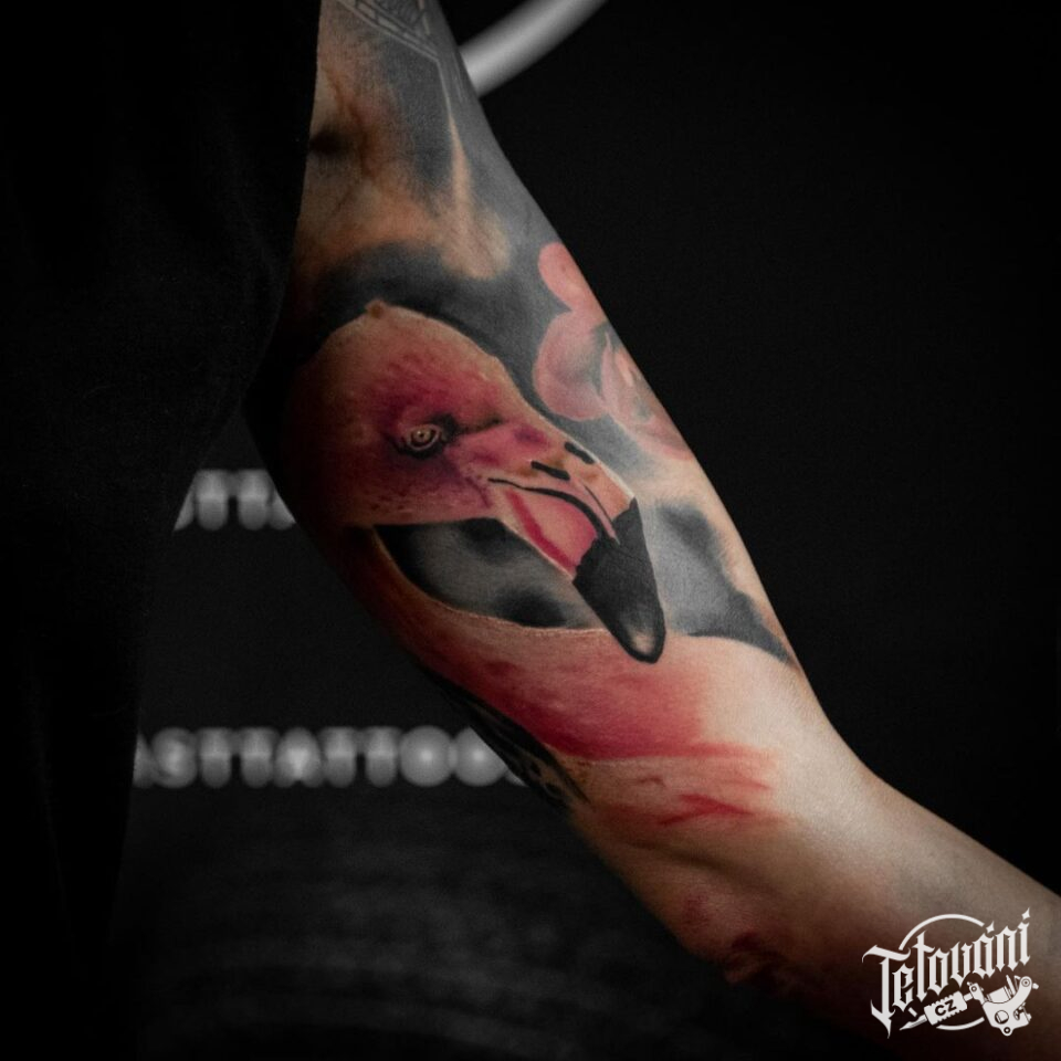 Tetování na ruku, zvíře, plamenák