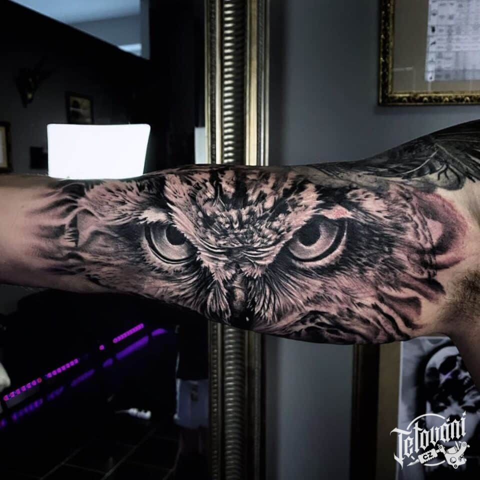 Tetování na ruku, zvíře, sova