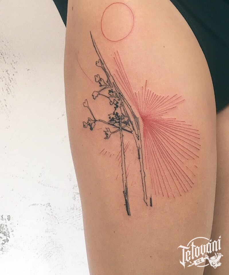 Tetování na stehno, čáry, pruhy