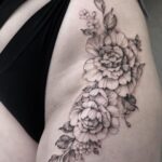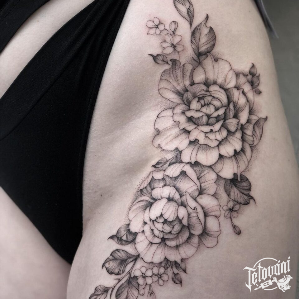 Tetování květiny na stehně