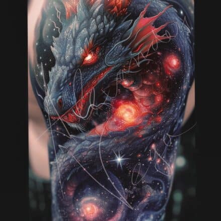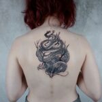 Tetování na záda, mystické bytosti, drak