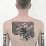Tetování na záda, vesmír, planety, čáry