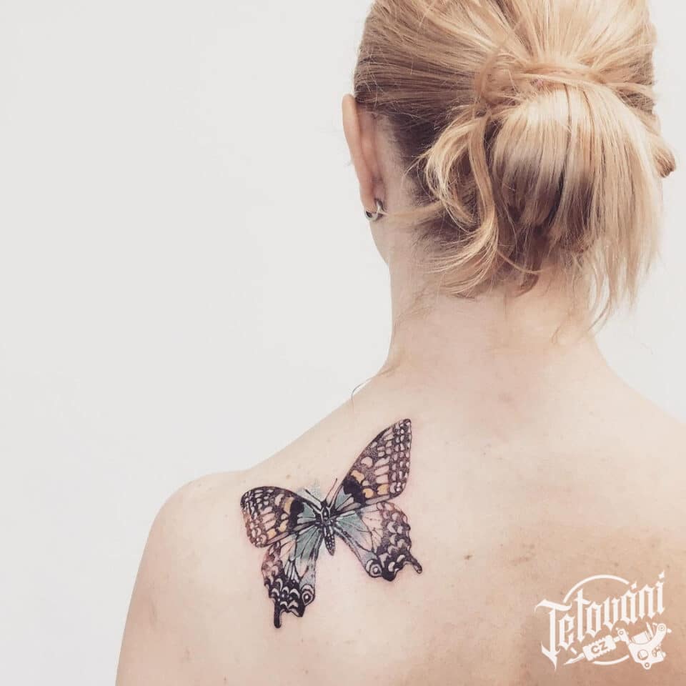 Tetování na záda, zvířata, motýl