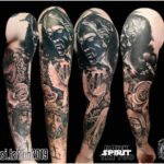 Tetování náboženské portréty, Panna Marie a Ježíš, rukáv