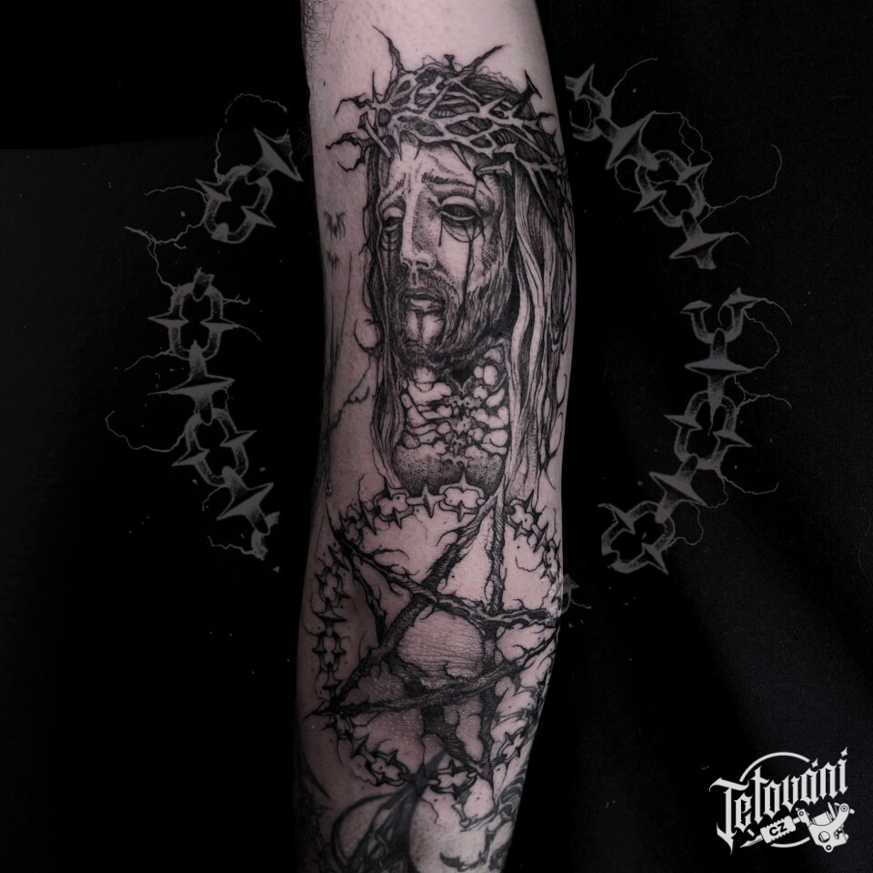 Tetování náboženství a znaky a symboly, pentagram na rukáv
