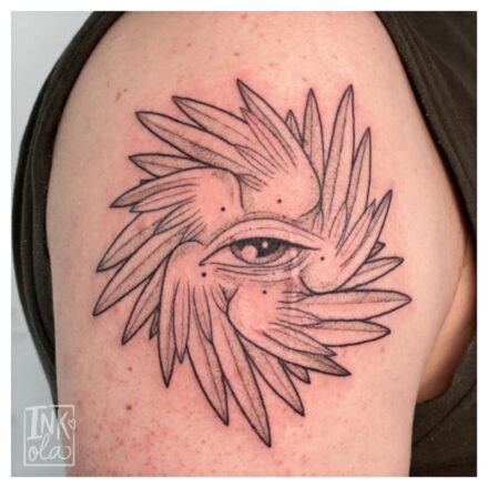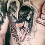 Tetování náboženství, anděl s křídly, portrét, symbol na prso