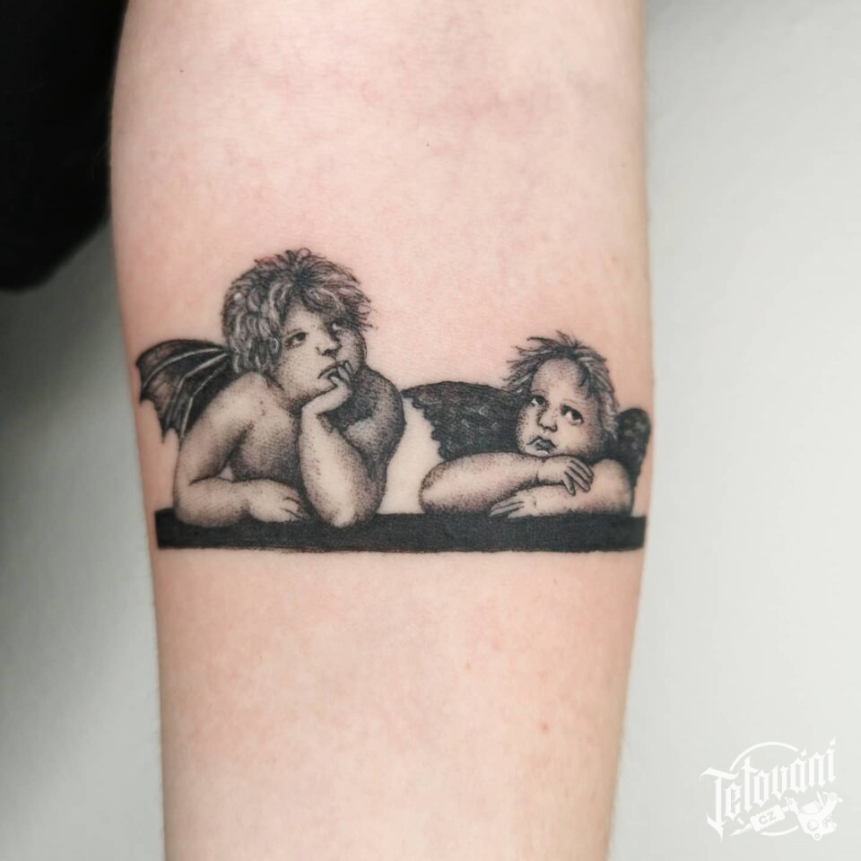 Tetování náboženství, andělé na předloktí