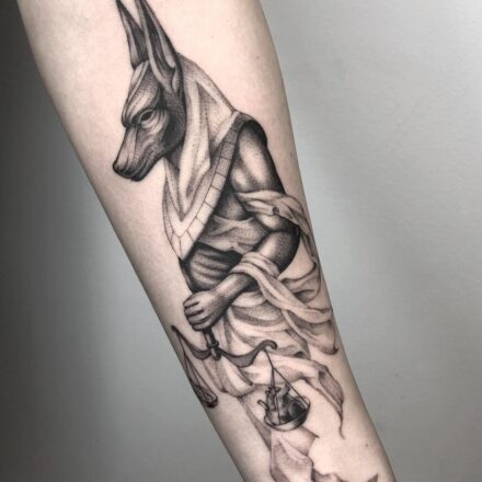 Tetování náboženství, Anubis, pyramidy na holeň
