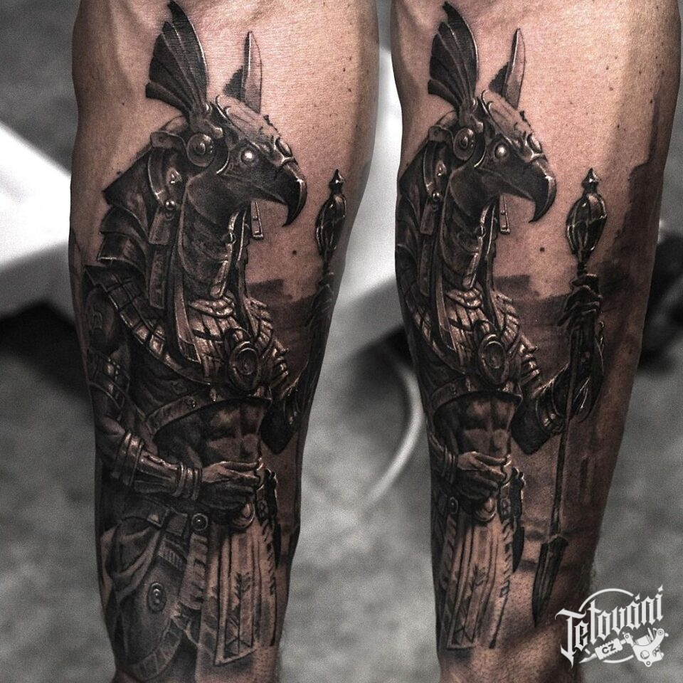 Tetování náboženství Horus, bojovník, portrét na předloktí