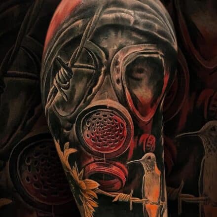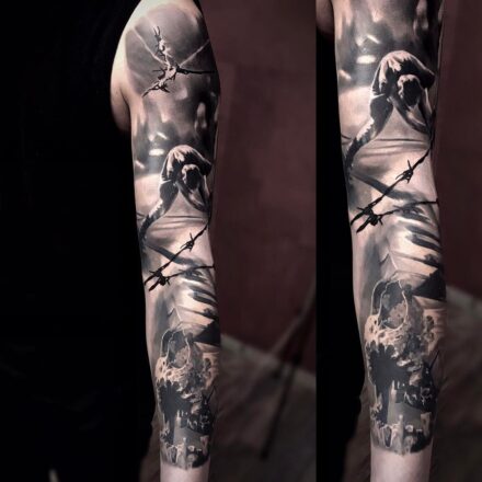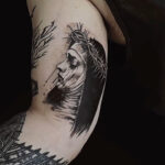 Tetování náboženství, jeptiška s ostnatým drátem na rameno