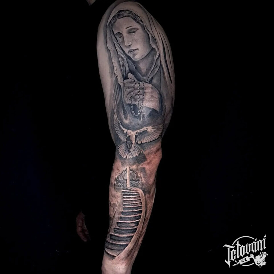 Tetování náboženství, křesťanství, Panna Marie, rukáv