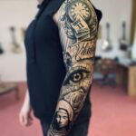 Tetování náboženství, Panna Marie, hodiny a růže, oko, jméno, rukáv
