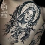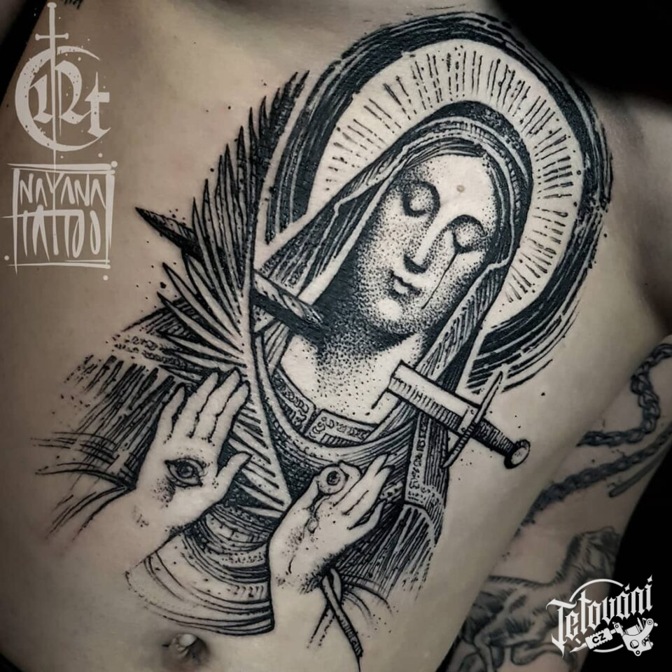 Tetování náboženství Panna Marie na hrudník