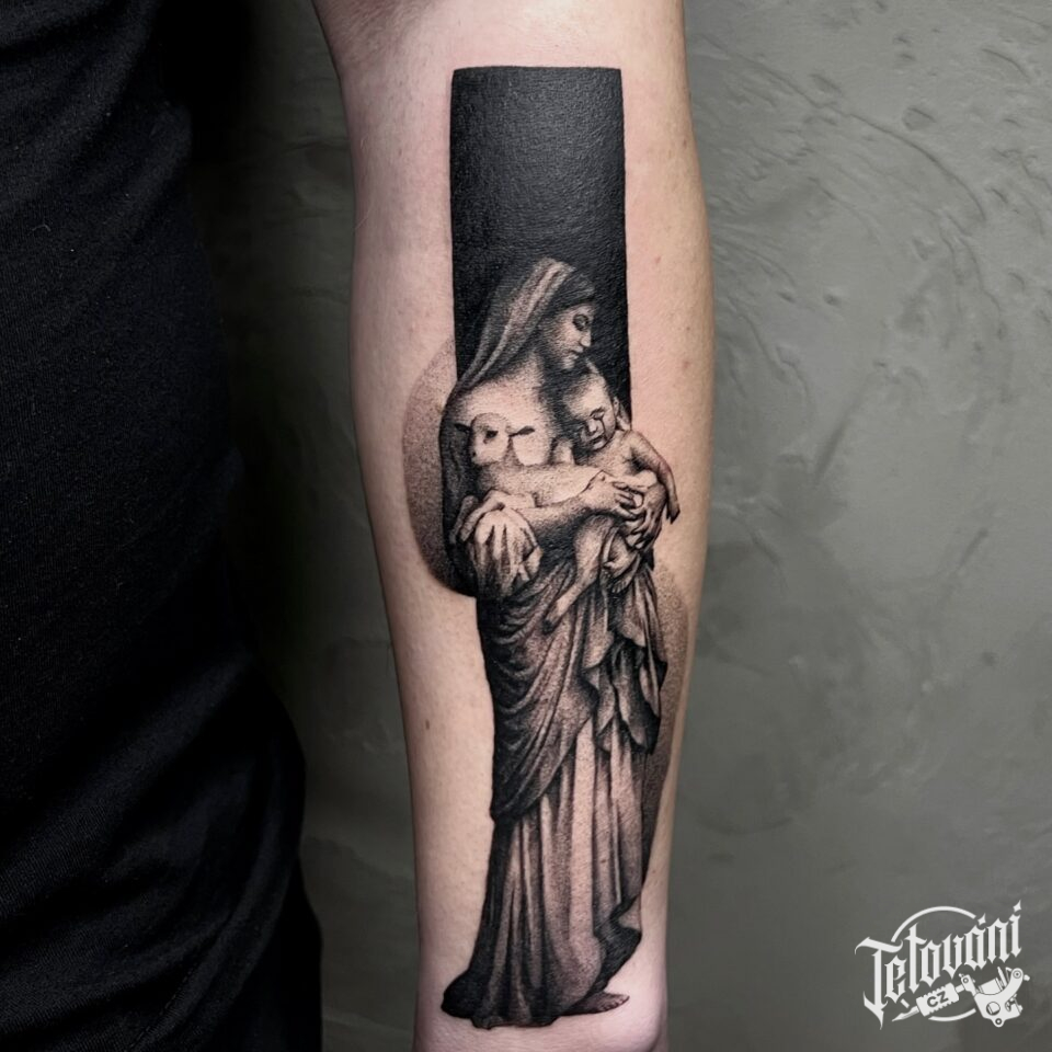 Tetování náboženství Panna Marie na předloktí