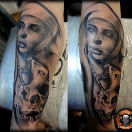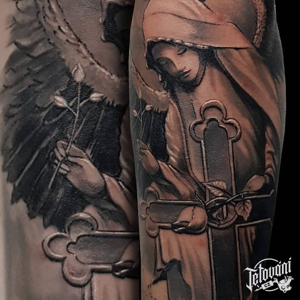 Tetování náboženství, Panna Marie s křížem na předloktí