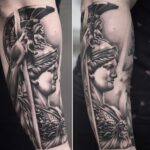 Tetování náboženství, portrét bohyně Athény na předloktí