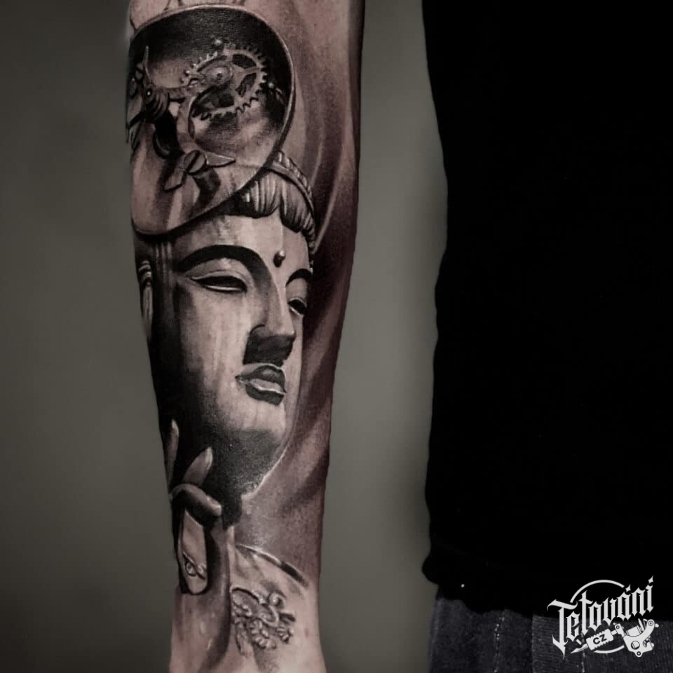 Tetování náboženství, portrét Buddhy na předloktí