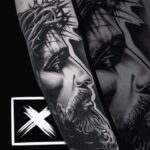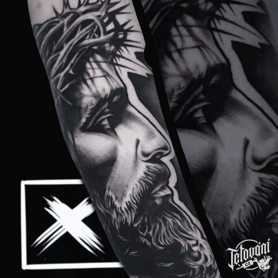 Tetování náboženství, portrét Ježíše Krista na předloktí